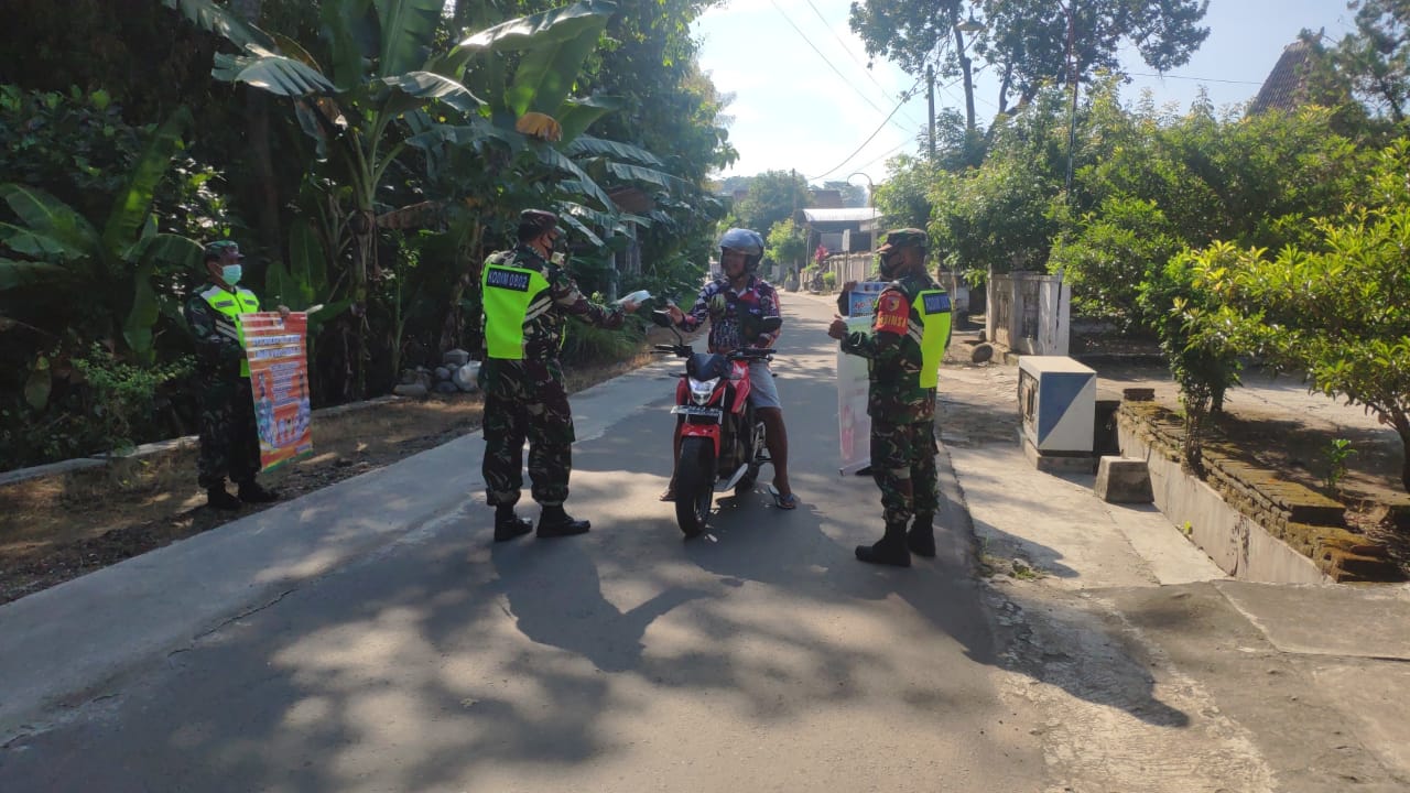 Operasi pendisiplin protokol kesehatan dipimpin Bati Wanwil Koramil tipe B 0802/04 Siman, Serma Sunarwan dengan sasaran adalah warga yang melintas di jalan Desa Patihan Kidul, Kecamatan Siman.