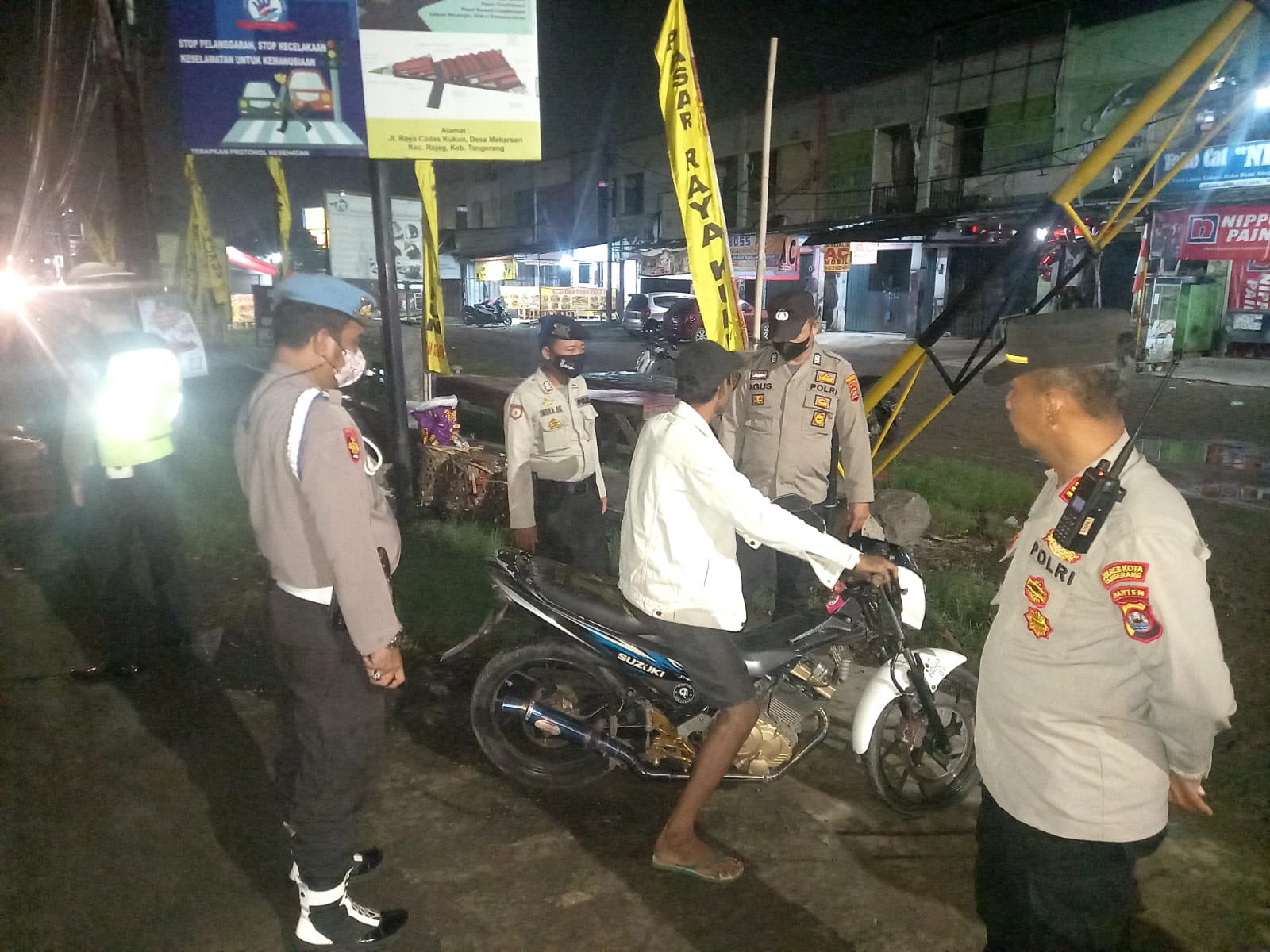 Kegiatan operasi Cipta Kondisi berlokasi di Jl.Raya Kukun – Cadas Kecamatan Rajeg Kabupaten Tangerang, yang dipimpin langsung oleh Kapolsek Rajeg AKP Nurjaman SH beserta 18 personil anggota gabungan dari Polsek Rajeg, Polsek Pasar Kemis, Polsek Mauk dan Satlantas Polresta Tangerang.