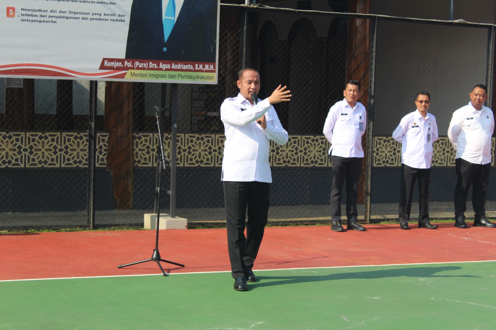 Dalam amanatnya, Kalapas menegaskan, bahwa perbedaan seragam tidak menjadikan perbedaan dalam tanggung jawab. Baik petugas regu pengamanan maupun staf administrasi merupakan satu kesatuan yang memiliki tugas utama menjaga keamanan dan ketertiban di lingkungan Lapas.