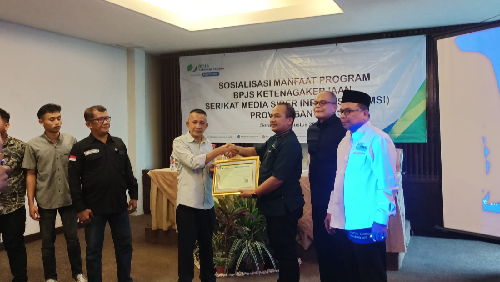 Kegiatan ini dipimpin langsung oleh Kepala Kantor BPJS Ketenagakerjaan Cabang Serang, Achmad Fatoni dengan dihadiri secara langsung oleh Ketua SMSI Provinsi Banten Lesman Bangun beserta seluruh anggota SMSI Provinsi Banten.