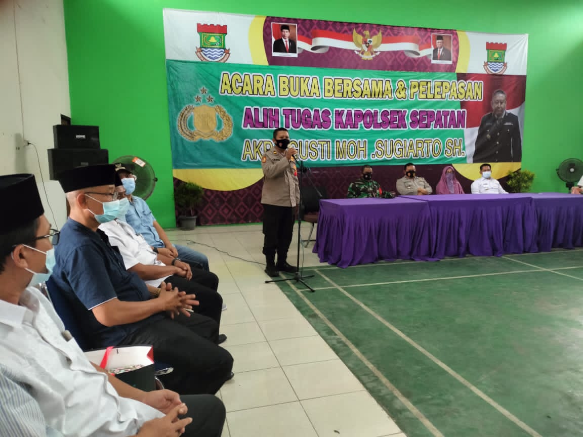 ANGKET24.ID- Buka puasa bersama dan pelepasan alih tugas Kapolsek Sepatan Polres Metro Tangerang Kota AKP I Gusti Moh Sugiarto, SH, bertempat di Aula Kecamatan Sepatan, Kabupaten Tangerang