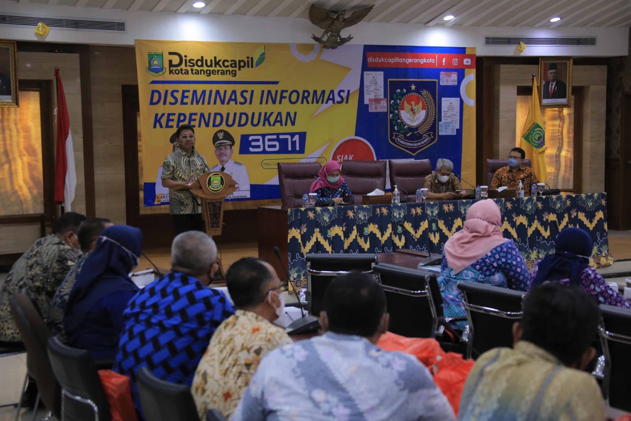 ANGKET24.ID, KOTA TANGERANG-Dinas Kependudukan dan Pencatatan Sipil Kota Tangerang (Disdukcapil) menggelar kegiatan Diseminasi Informasi Kependudukan yang diikuti oleh seluruh Kasie Pelayanan dari 13 kecamatan serta Kasie Tata Pemerintahan dari 104 kelurahan se-Kota Tangerang.