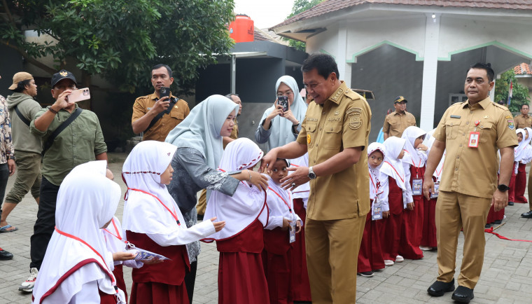 ANGKET24.ID, TANGERANG – Bupati Tangerang, Moch Maesyal Rasyid, melakukan monitoring hari pertama masuk sekolah di SD Al Hidayah di Desa Rawa Burung, Kecamatan Kosambi, Senin (14/7/25).