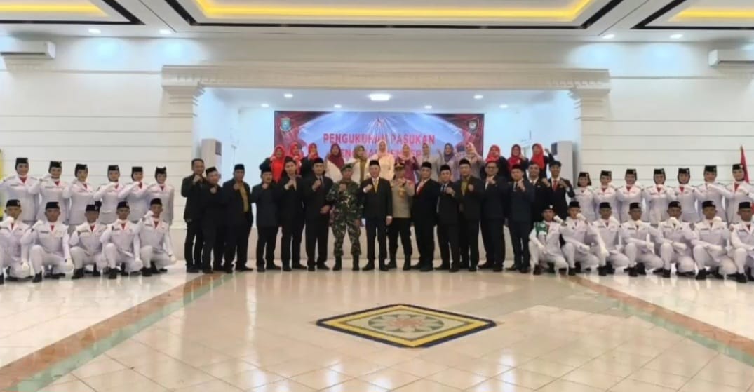 Paskibra tingkat Kecamatan Larangan, Kota Tangerang, tahun 2025 yang secara resmi dikukuhkan oleh Camat Larangan, H. Nasrullah, S.E., M.A.P., di gedung Silungkang, Kelurahan Larangan Indah, Kecamatan Larangan, Kamis malam (14/8/2025).