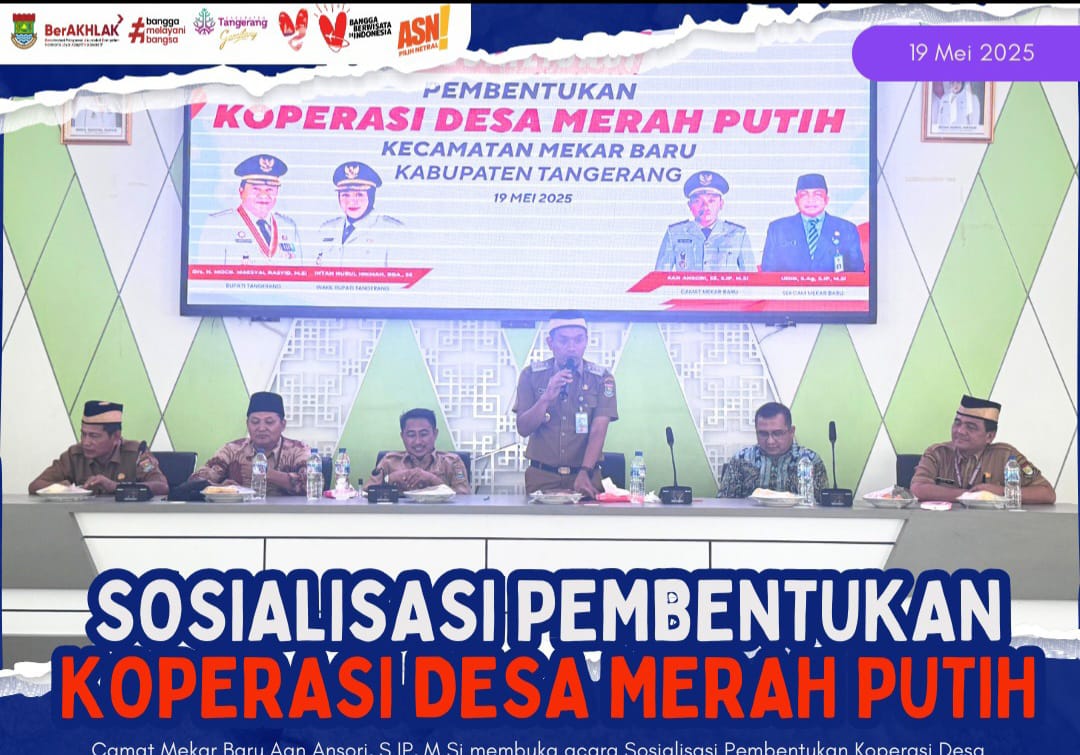 ANGKET24.ID, KAB.TANGERANG – Pemerintah Kabupaten Tangerang melalui Dinas Koperasi terus mendorong percepatan pembentukan Koperasi Merah Putih, yang diamanatkan dalam Instruksi Presiden Nomor 9 Tahun 2025. Sebagai bagian dari upaya ini, Kecamatan Mekar Baru menggelar sosialisasi pembentukan koperasi, diikuti oleh seluruh Kepala Desa di wilayah tersebut.
