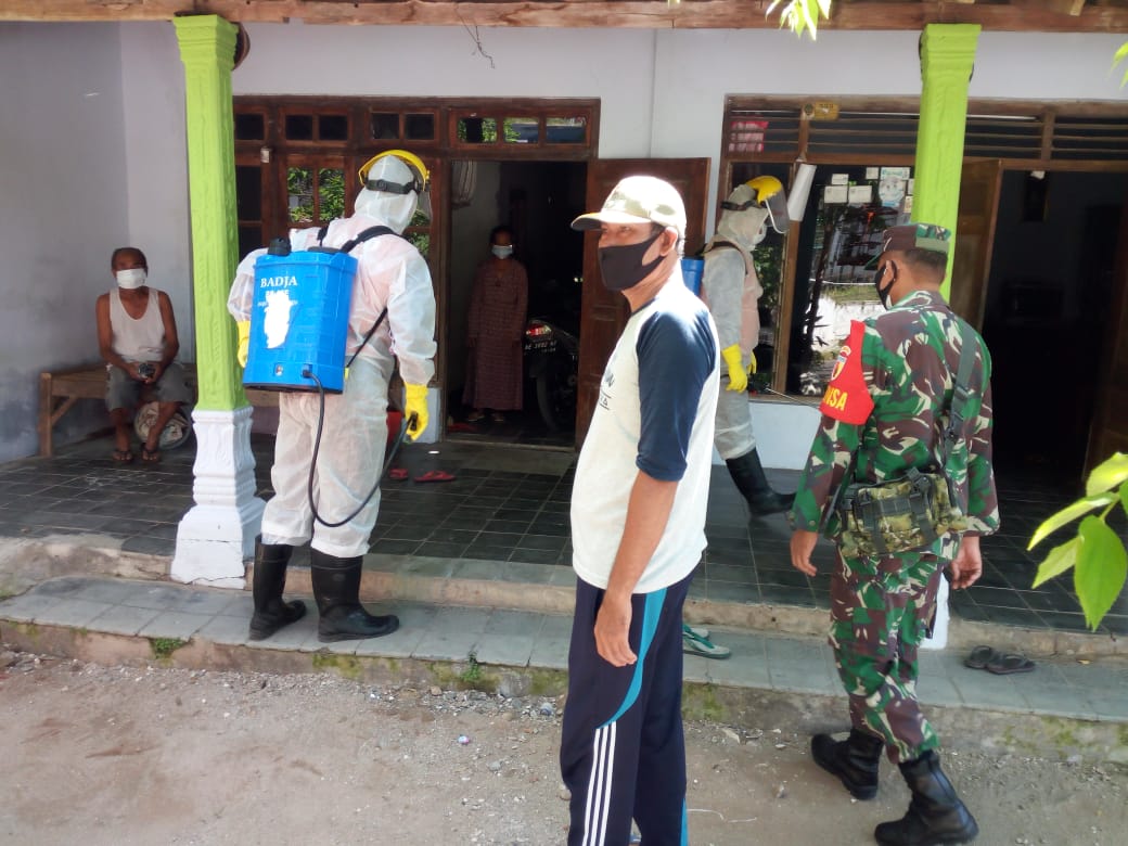 ANGKET24.ID, MADIUN – Guna mencegah penyebaran covid-19 di wilayahnya, Babinsa Koramil 0803/11 Geger bersama satgas covid-19 melaksanakan penyemprotan di rumah salah satu warga Desa Geger, Kecamatan Geger, Kabupaten Madiun, Sabtu (24/04).