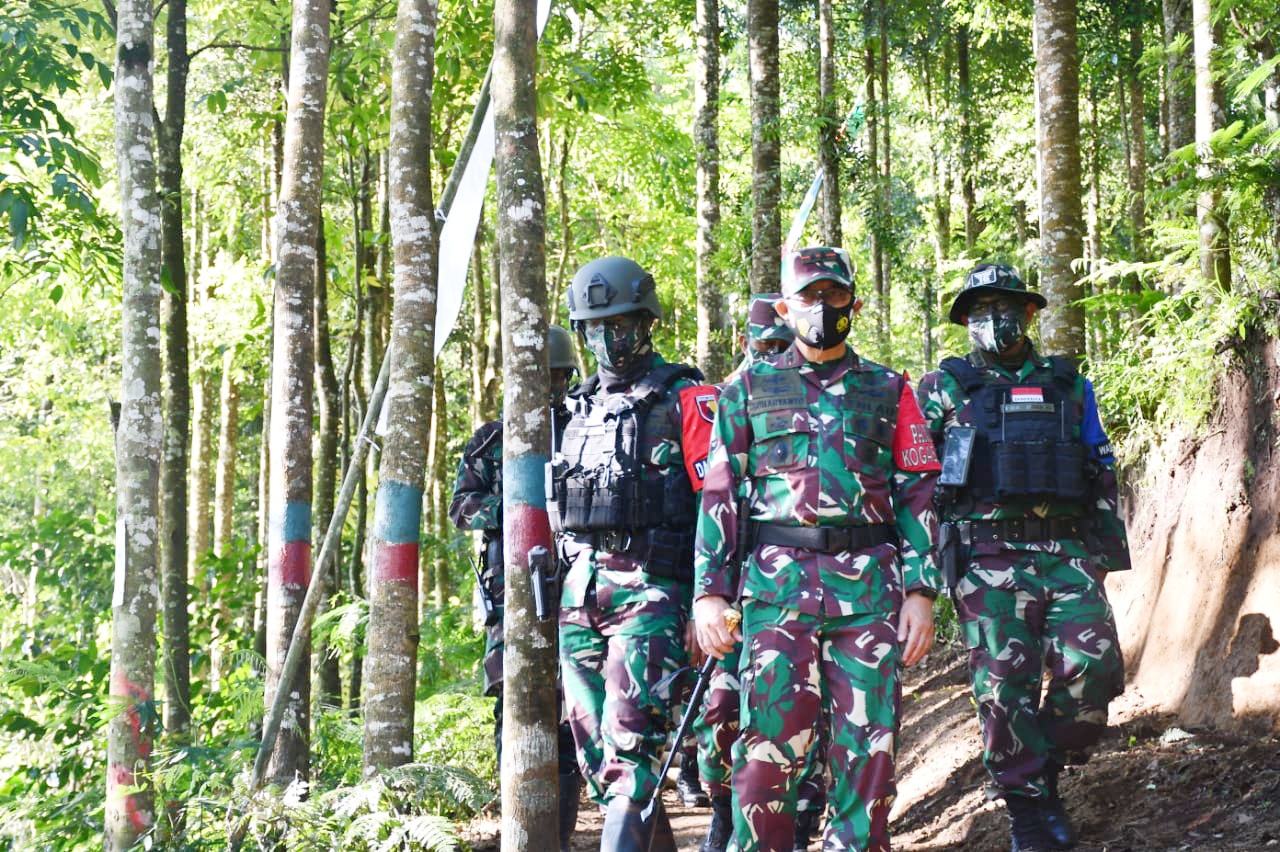 Dengan menyusuri jalan perbukitan, Pangdam, Danrem dan rombongan tampak meninjau keberadaan Posko latihan yang ada di sana dan meninjau langsung pelaksanaan latihan yang tengah dilakukan.