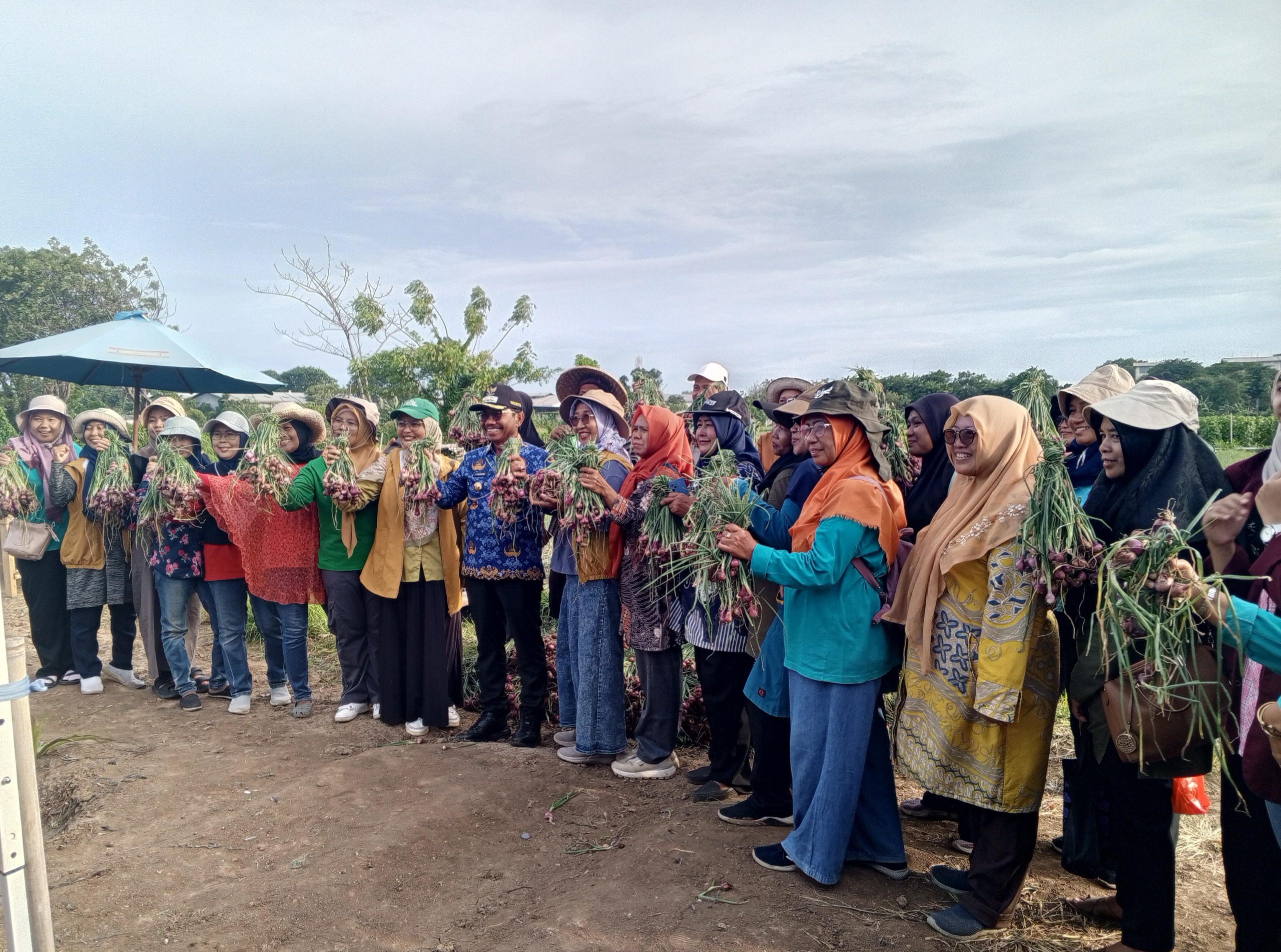 SULUHNEWS.ID, KOTA TANGERANG – Walikota Tangerang, Sachrudin, meninjau panen bawang dan melon di RT.005/RW.004, Batusari, Kecamatan Batuceper, Kota Tangerang Senin (17/11/2025). Hasil panen ini merupakan binaan Dinas Ketahanan Pangan (DKP) Kota Tangerang, yang juga dihadiri Forum Kelompok Wanita Tani (KWT) Kota Tangerang.