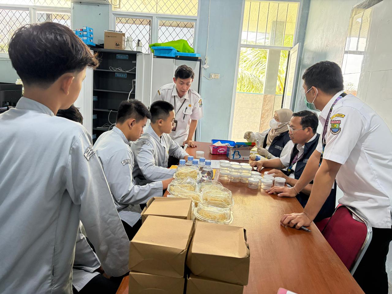 Kegiatan tersebut melibatkan tim Laboratorium Kesehatan Daerah (Labkesda) bersama Dinas Kesehatan serta tenaga medis dari Puskesmas Sukamulya.