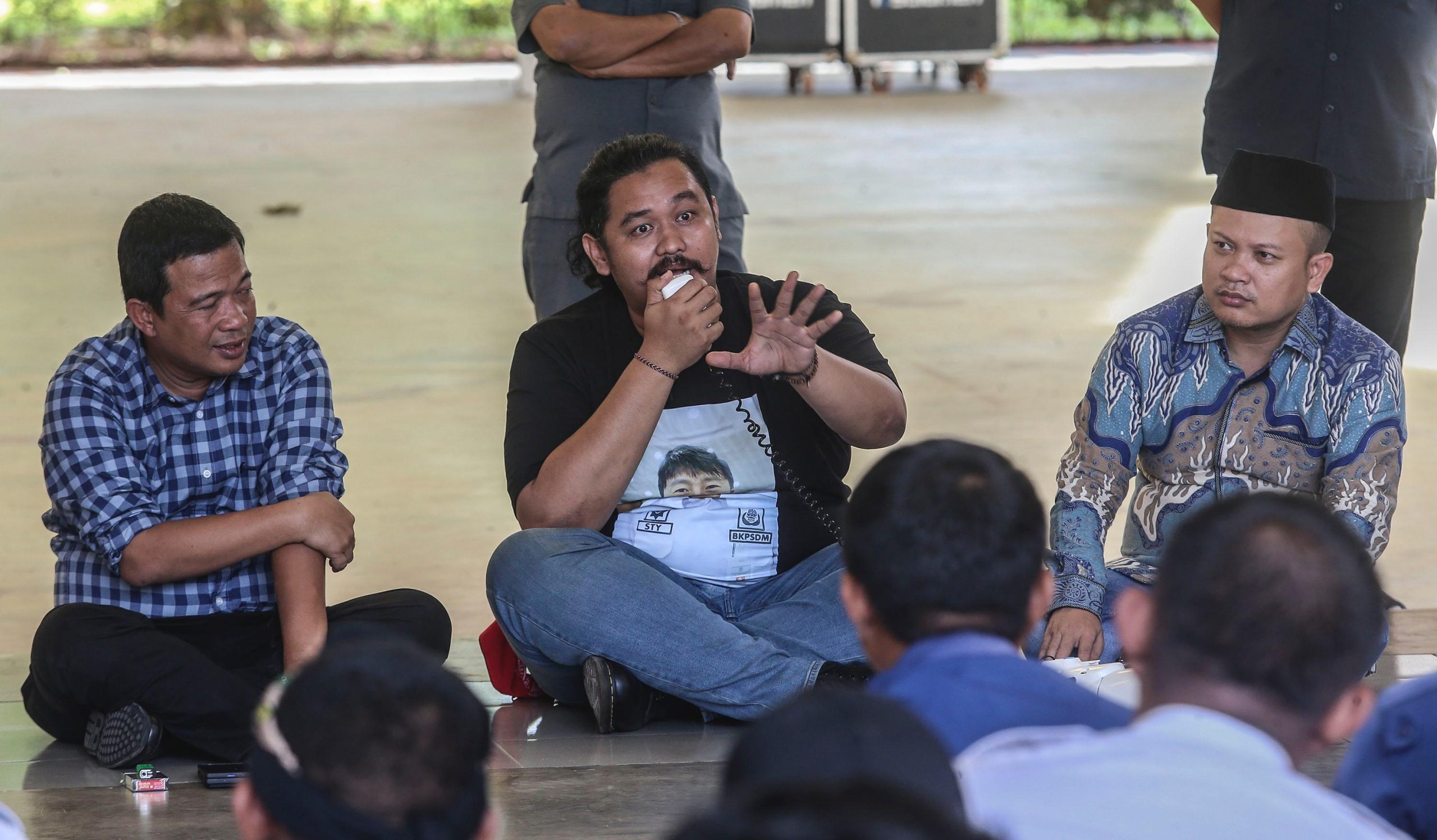 Selanjutnya, rombongan digiring ke area Plaza gedung Pusat Pemerintahan Kota Tangerang untuk menyampaikan aspirasinya.