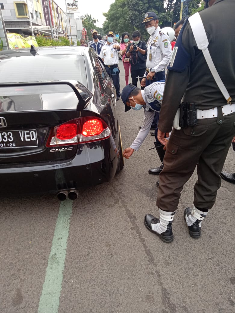 Razia parkir Liar di Tangerang Kota puluhan motor dan mobil di kempeskan.