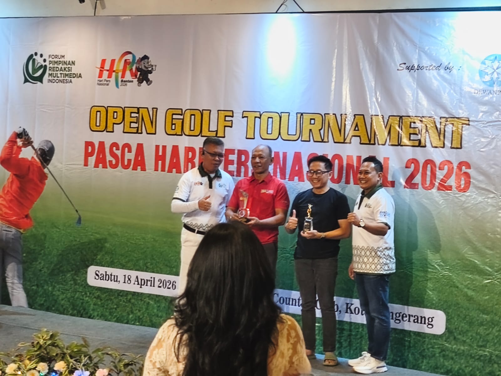 ANGKET24.ID, KOTA TANGERANG – Forum Pimpinan Redaksi Multimedia Indonesia menggelar Open Golf Tournament Pasca Hari Pers Nasional (HPN) 2026 di Modern Golf and Country Club, Kota Tangerang, Banten pada, Sabtu (18/04/2026). Kegiatan ini dibuka secara simbolis melalui shot gun oleh Gubernur Banten yang diwakili Kadis Kominfo, Beni Ismail dan Wali Kota Tangerang yang diwakili Kadispora H Kaunang dan Anggota Dewan Pers, Yogi Hadi Ismanto.