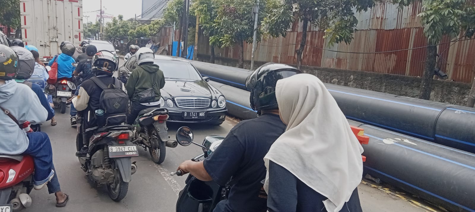 “Nggak ada galian aja udah macet parah gara-gara buruh Panarub pulang bersamaan. Sekarang tambah gila macetnya, jalur nyempit, pipa gede taruh di tengah jalan, nggak ada yang ngatur. Bahaya banget,” ujarnya.