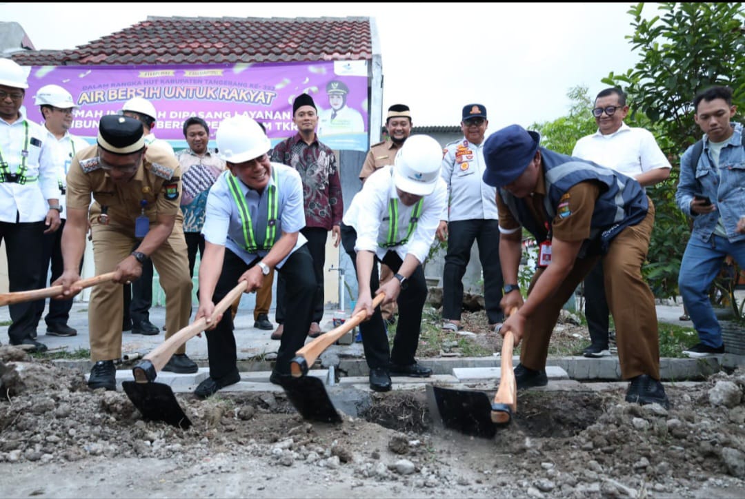 “Hari ini kami bersama Direktur Utama dan Dewas Perumdam TKR, Kadis Bina Marga, Kadis LHK, Kadishub, Camat Rajeg, dan Lurah Rajeg Mulya datang ke Perumahan Pondok Permata dalam rangkaian kegiatan HUT Kabupaten Tangerang ke-393. Alhamdulillah, kami baru saja melayani pemasangan sambungan air bersih kepada 200 rumah warga secara gratis,” ungkap Bupati Maesyal Rasyid.