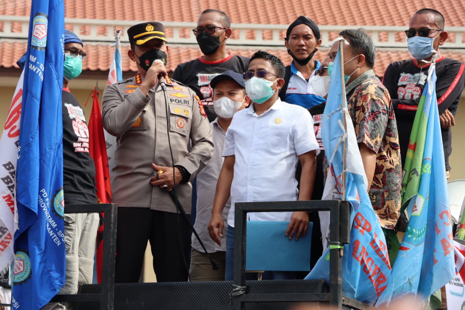 Dalam aksi tersebut Kapolres metro Tangerang kota Kombes pol Komarudin mengapresiasi buruh yang melakukan aksi unjuk rasa dengan santun, tertib dan elegan.