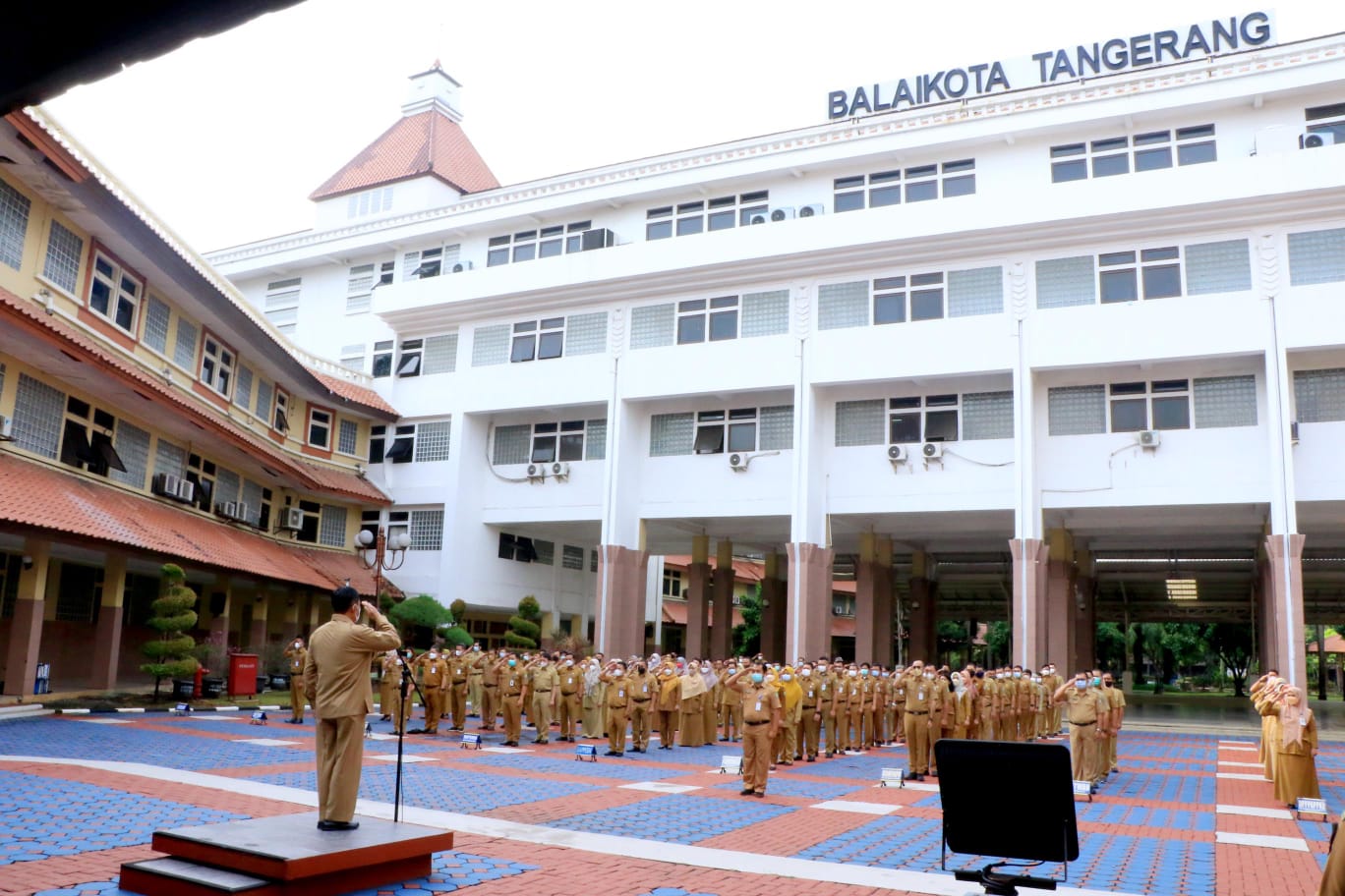 Sekretaris Daerah Kota Tangerang Herman Suwarman yang hadir menjadi pembina apel menyampaikan kepada para pegawai bahwa kasus Covid-19 di Kota Tangerang sudah mengalami penurunan, akan tetapi apel pagi masih dilakukan secara terbatas diseluruh lingkup Pemerintah Kota Tangerang.