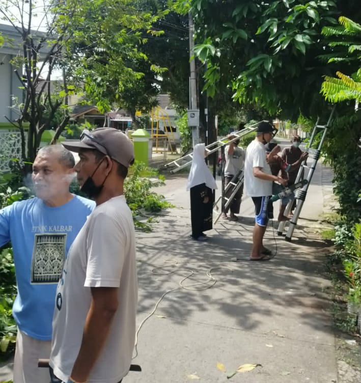 Seperti yang dilakukan hari ini, Sabtu, (05/03/2022), warga melakukan kerja bakti dengan melakukan perapihan pohon yang mengganggu penerangan lampu jalan dan keamanan.