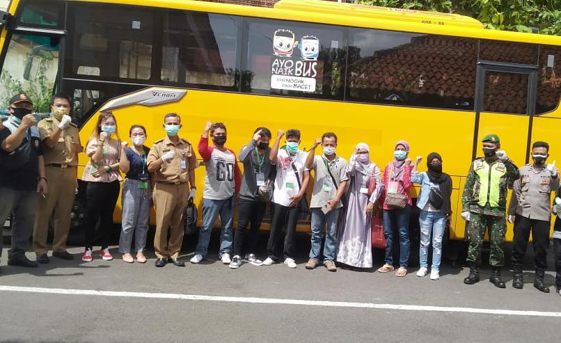 Petugas gabungan yang terdiri dari TNI (Kodim 0803/Madiun) – Polri (Polres Madiun), Satol PP Kab. Madiun, Dishub Kab. Madiun, Depnaker Kab. Madiun dan Dinkes Kab. Madiun menjeput mereka untuk dibawa pulang ke wilayahnya, Selasa (04/05).