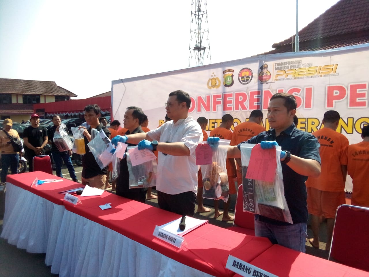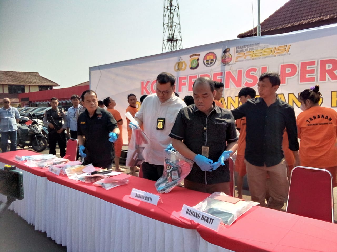 ANGKET24.ID, KOTA TANGERANG – Polres Metro Tangerang kota menggelar acara konferensi Pers terkait pengungkapan kasus dengan modus pemerasan disertai ancaman yang terjadi di wilayah hukumnya. Kasus ini terungkap pasca adanya laporan masyarakat serta Ketua Pengusaha Hotel dan Restoran (PHRI) Oman Jumansyah yang merasa resah akan maraknya pemerasan pada tamu hotel di sejumlah lokasi di Tangerang.