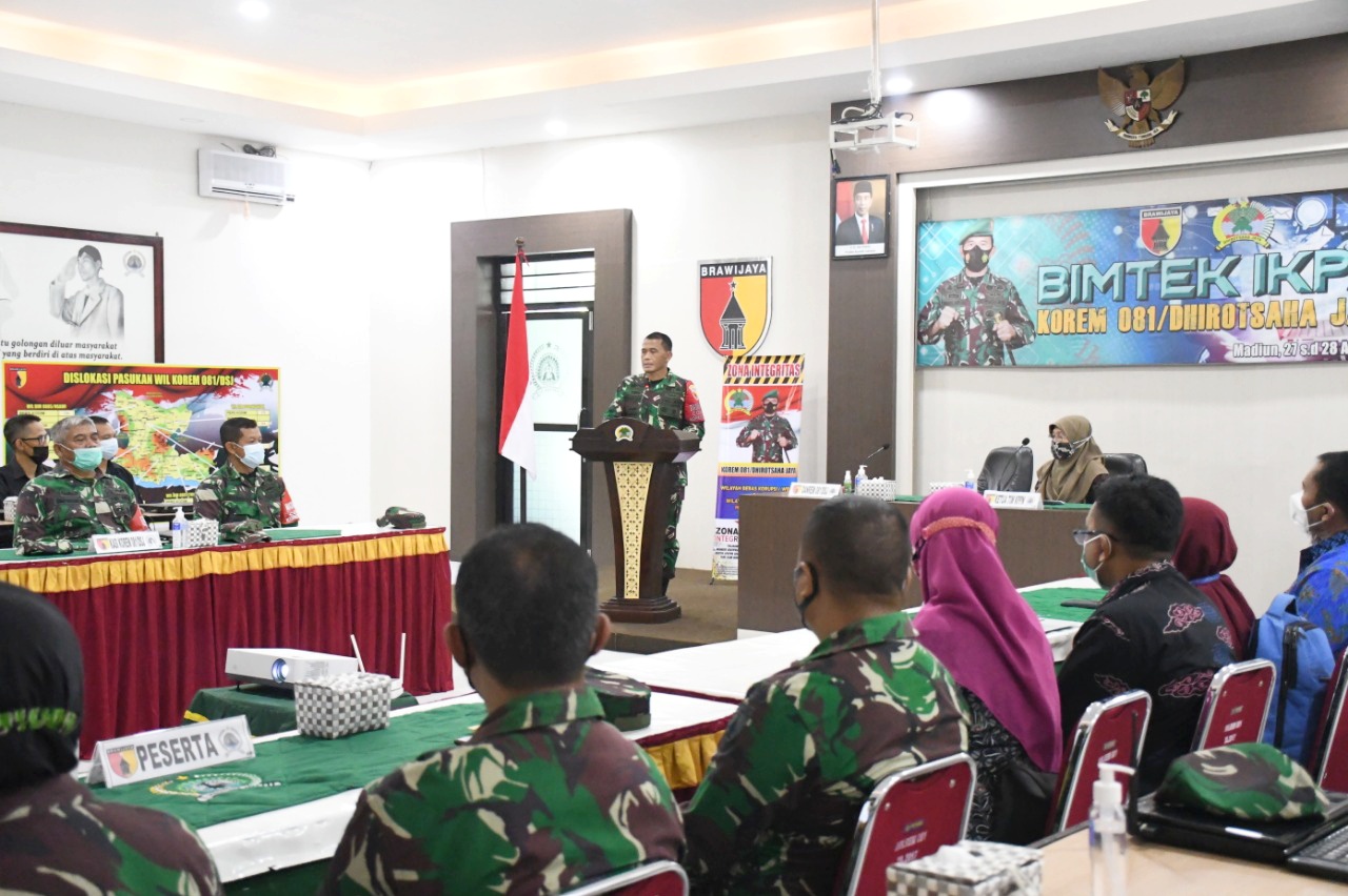 Tak ketinggalan dalam sambutannya, Danrem juga mengucapkan selamat datang kepada Indah Sofiati dari KPPN Madiun selaku narasumber pada kegiatan Bimtek IKPA tersebut.