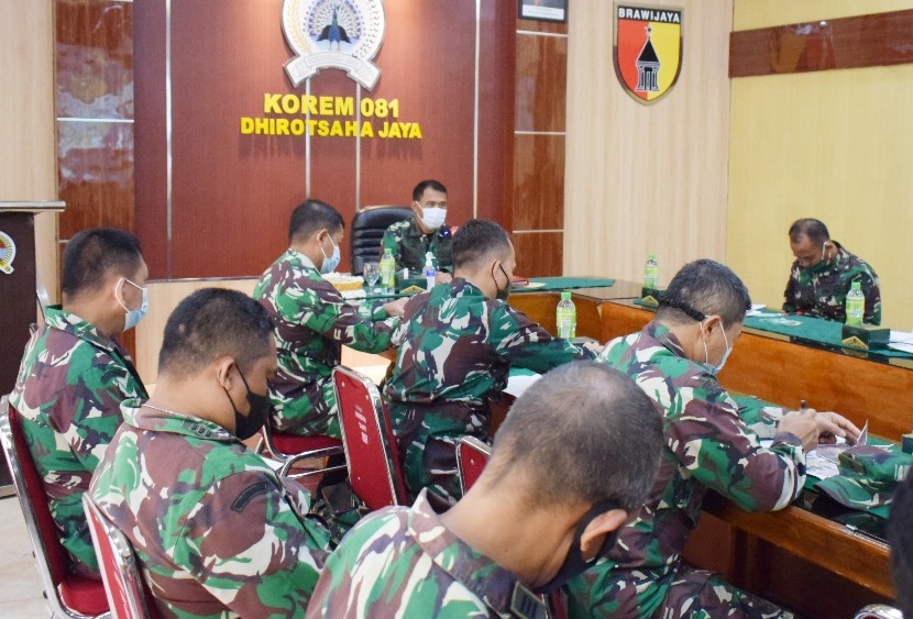 Untuk itu, sebelum dilakukannya pemantauan pada besok (26/3), Danrem 081/DSJ, Kolonel Inf Waris Ari Nugroho, S.E., M.Si. terlebih dahulu memimpin Rakor di Rupat Merak Jaya Makorem, Jl. Pahlawan No. 50 Kota Madiun, Kamis (25/3/2021) siang.