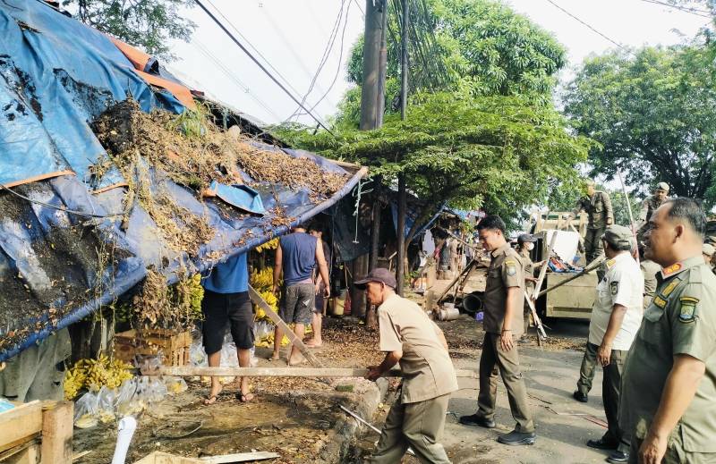 Lanjut Camat, lapak-lapak yang dibangun dari kayu, bambu, dan terpal dibongkar satu per satu. Meja dan gerobak yang ditinggalkan pemiliknya, diangkut menggunakan truk Satpol PP. Barang-barang tersebut dapat diambil kembali dengan datang dan melapor ke Kantor Satpol PP Kota Tangerang.