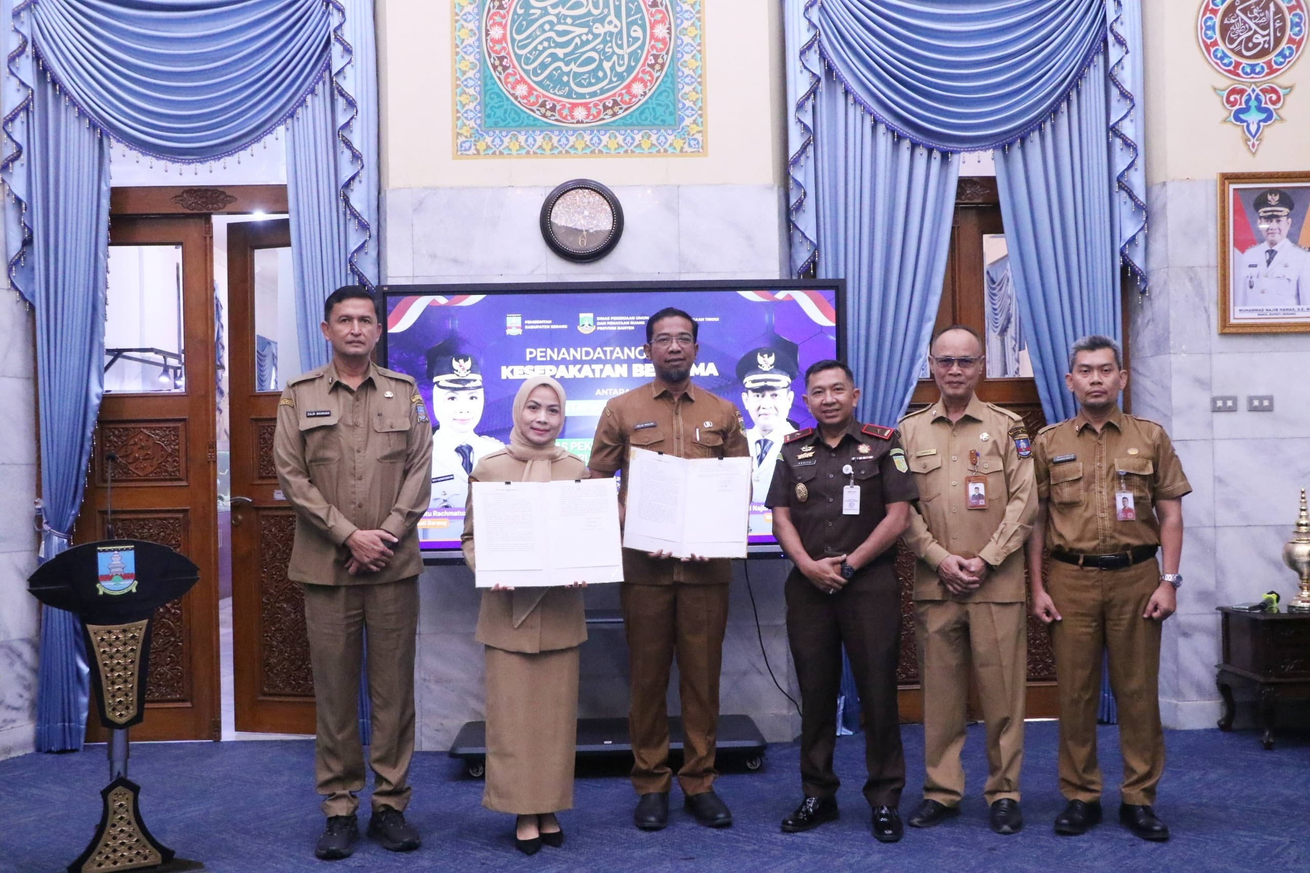Penandatanganan dilakukan oleh Bupati Serang Ratu Rachmatuzakiyah dan Kepala DPUPR Banten Arlan Marzan. Dilanjutkan Penandatangan Kerja Sama atau PKS antaran Kepala Dinas Ketahanan Pangan dan Pertanian (DKPP) Suhardjo, Kepala DPUPR Kabupaten Serang Mochammad Ronny Natadipraja dan Kepala DPUR Provinsi Banten, Arlan Marzan disaksikan Wakil Kepala Kejaksaan Tinggi (Wakajati) Banten Ardito Muwardi di Pendopo Bupati pada Selasa, 3 Februari 2026.