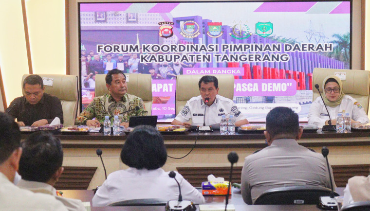 ANGKET24.ID, TANGERANG – Pemerintah Kabupaten (Pemkab) Tangerang menggelar rapat koordinasi bersama Forum Koordinasi Pimpinan Daerah (Forkopimda) Kabupaten Tangerang pasca terjadinya aksi demonstrasi di sejumlah wilayah dan perkembangan yang terus berkembang saat ini di Ruang Rapat Wareng, Gedung Bupati Tangerang, Rabu (10/9/2025).