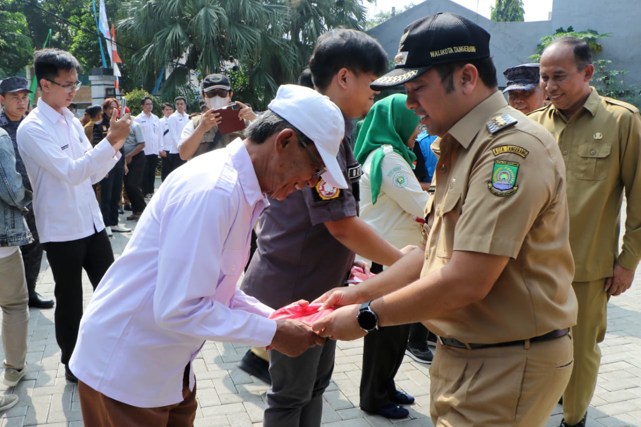 Bersamaan dalam kegiatan Deklarasi dan Pencanangan Kelurahan Bersinar, Pemkot Tangerang membagikan bendera merah putih kepada warga masyarakat. Ini merupakan bagian dari Gerakan Pembagian 10 Juta Bendera Merah Putih dalam rangka menyongsong HUT RI ke -78 Tahun 2023.(Sudirman/rls)
