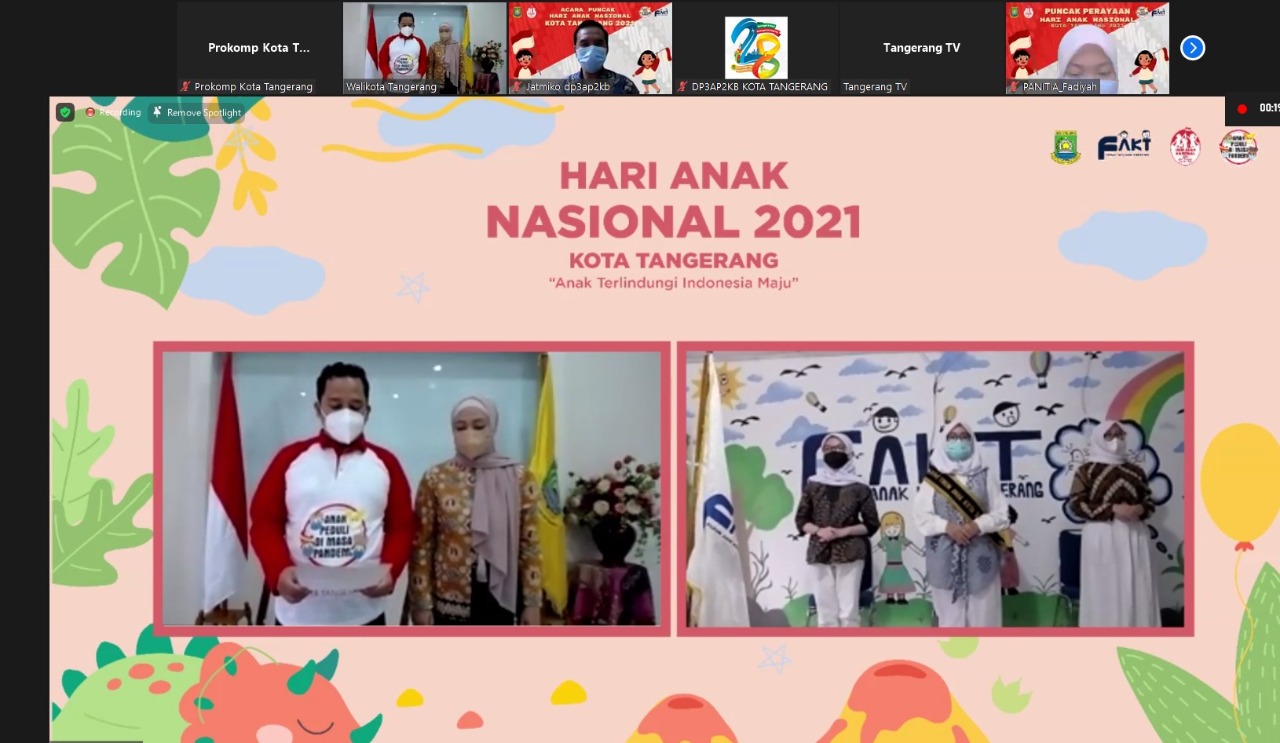 ANGKET24.ID, KOTA TANGERANG-Pemerintah Kota Tangerang melalui Dinas Pemberdayaan Perempuan, Perlindungan Anak, Pengendalian Penduduk Dan Keluarga Berencana (DP3AP2KB) menggelar Perayaan Puncak Hari Anak Nasional Kota Tangerang 2021, yang diselenggarakan secara virtual bersama dengan anak-anak Kota Tangerang, Kamis (5/8).