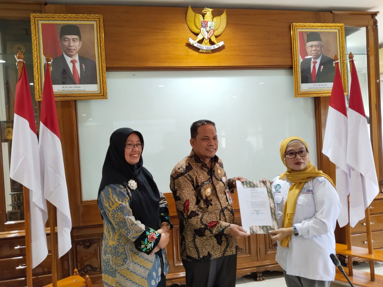 Sebelum ditutup ketua SMSI Kota Tangerang menyerahkan SK kepengurusan SMSI Kota Tangerang kepada Pj Walikota.(Sudirman)