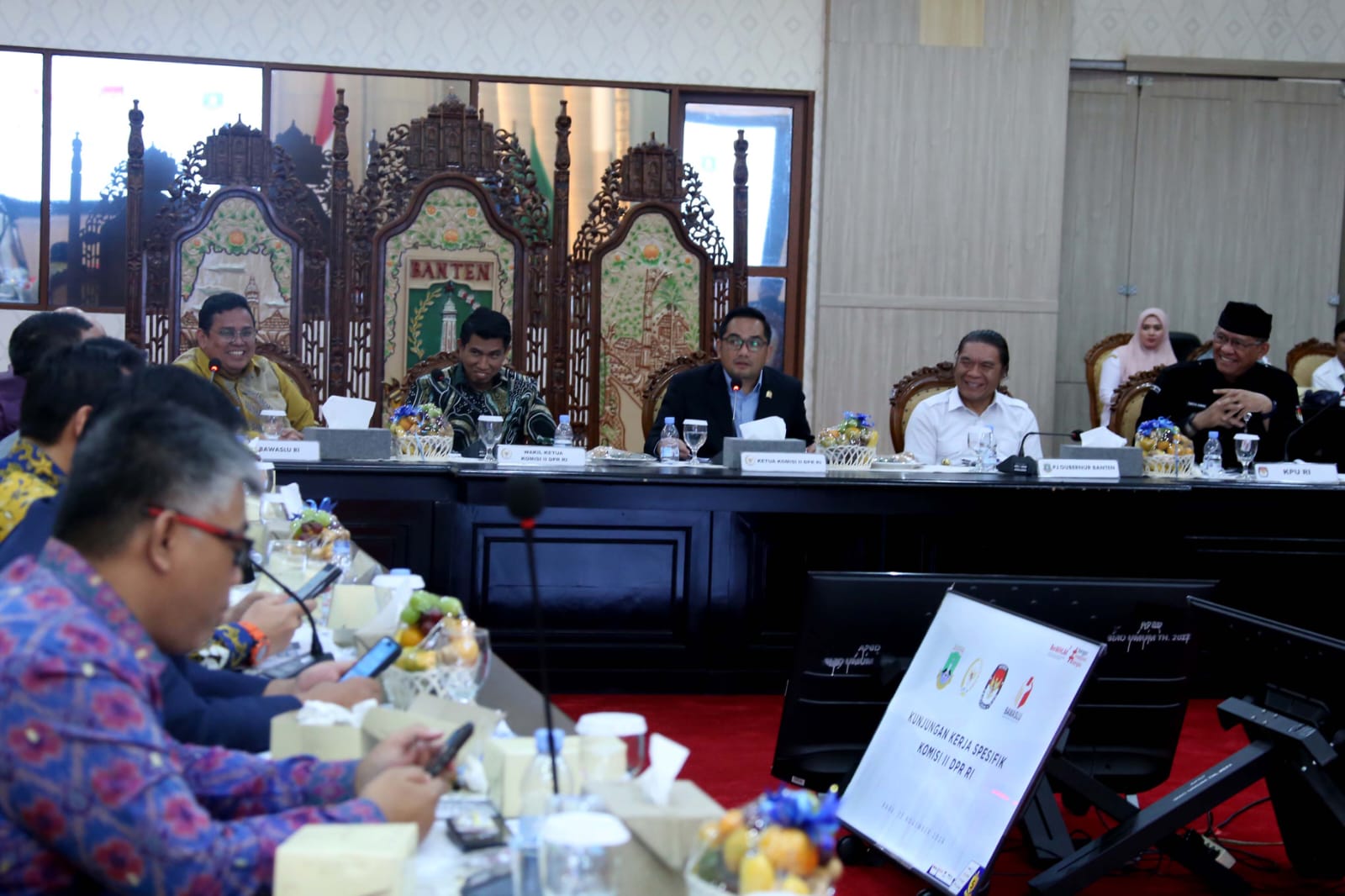 “Alhamdulillah, kami bersama Ketua KPU Kota Tangerang dapat menghadiri kunjungan Komisi II DPR RI di Pendopo Gubernur Banten, yang tak lain sebagai bentuk komitmen kami untuk mendukung tugas lembaga negara dalam memfasilitasi pelaksanaan Pilkada serentak di Kota Tangerang,” ujar Dr. Nurdin.