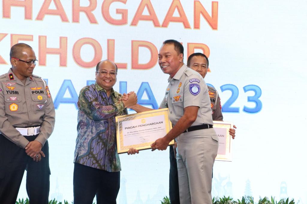Penghargaan tersebut diberikan pada kategori Dukungan dan Komitmen dalam Upaya Optimalisasi Penerimaan Sumbangan Wajib Dana Kecelakaan Lalu Lintas Jalan (SWDKLLJ) Melalui Intensifikasi Kebijakan Relaksasi oleh Pemerintah Daerah (Pemda).