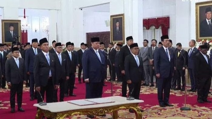 ANGKET24.ID, JAKARTA – Presiden Prabowo Subianto didampingi Wakil Presiden Gibran Rakabuming Raka melantik Menteri Kabinet Merah Putih masa jabatan 2024-2029. Presiden melantik 48 menteri dan 5 pejabat setingkat menteri di Istana Negara, Jakarta, Senin (21/10/2024) pagi.