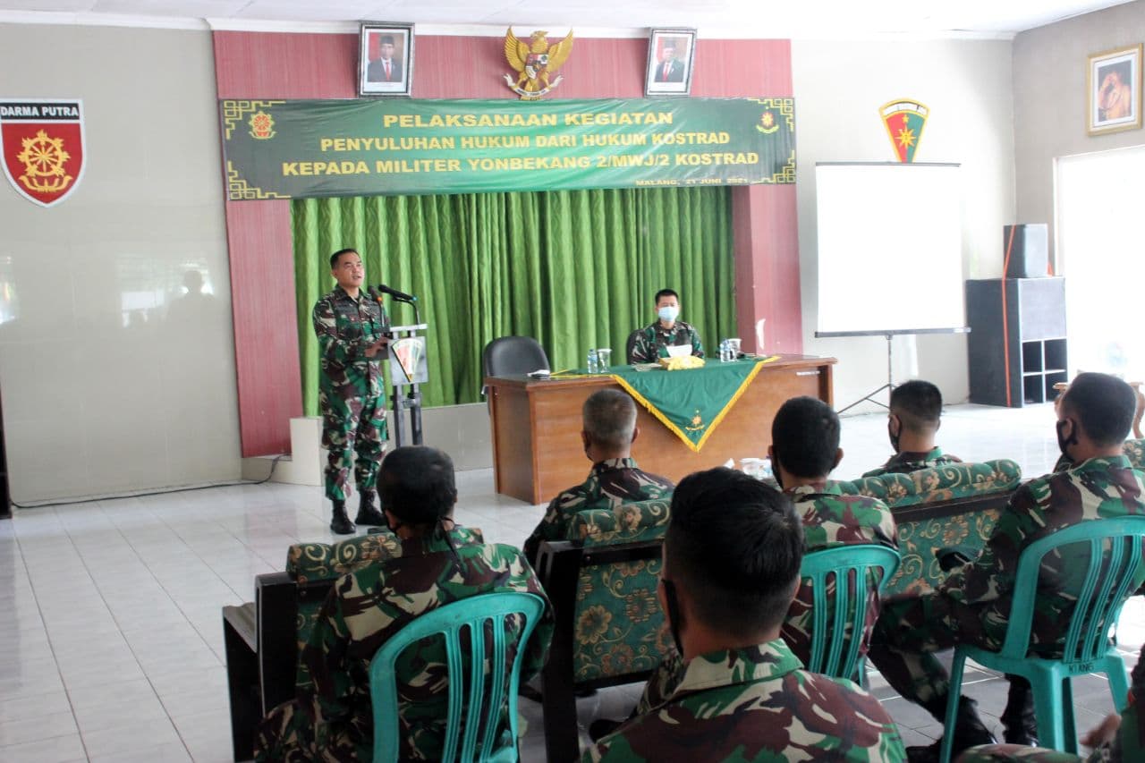 ANGKET24.ID, JAKARTA – Bertempat di Aula Mustakim anggota Militer dan Persit Batalyon Bekang 2 Kostrad menerima penyuluhan hukum oleh Tim Penyuluh dari Hukum Kostrad, Malang. Senin (21/06/2021).