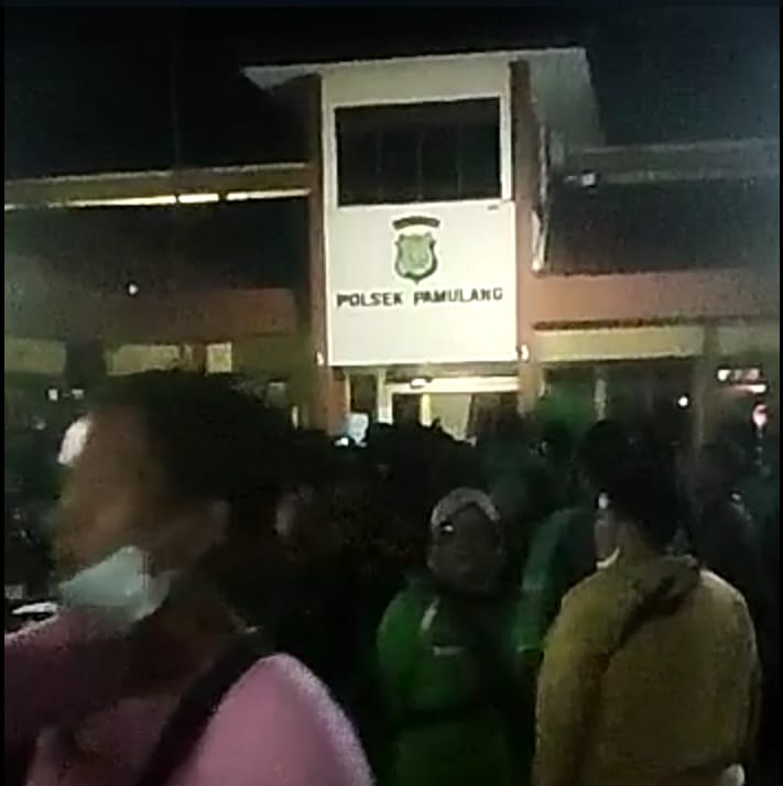 ANGKET24.ID, TANGERANG SELATAN.- Ratusan Pengemudi Ojek Online (Ojol) mendatangi Polsek Pamulang atas kejadian pemukulan terhadap rekannya pada Minggu sore (09/01/2022). Peristiwa na’as yang terjadi pada pengemudi ojol T (46) tahun dan anaknya A (13) tahun berawal akibat adanya kesalahpahaman antara dirinya dengan salah seorang oknum perwira TNI Angkatan Laut saat melintas di jalan Mujair Pamulang.