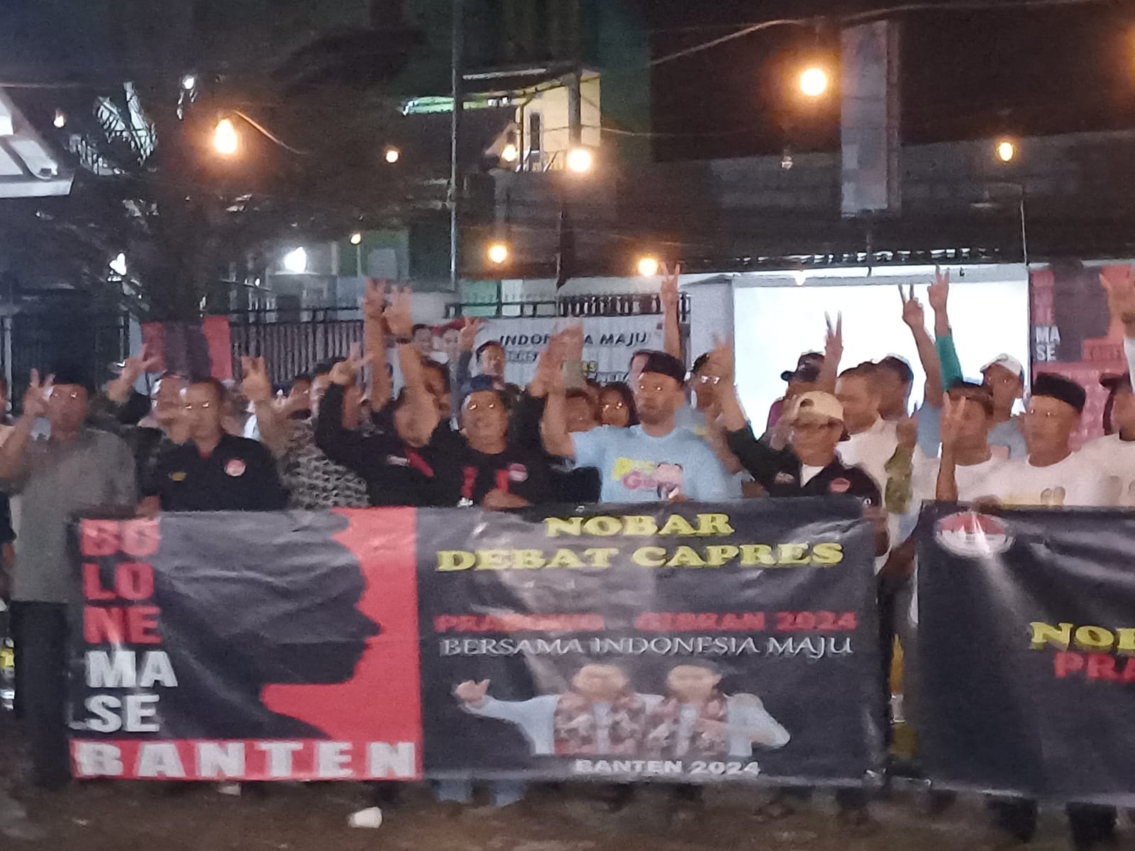 ANGKET24.ID, SERANG – Relawan Prabowo-Gibran dari Bolone Mase, PAS Gibran mengadakan NOBAR Debat Capres & Cawapres di sekretariat PAS Gibran jalan Taktakan Kota Serang, Minggu (7/1/24).
