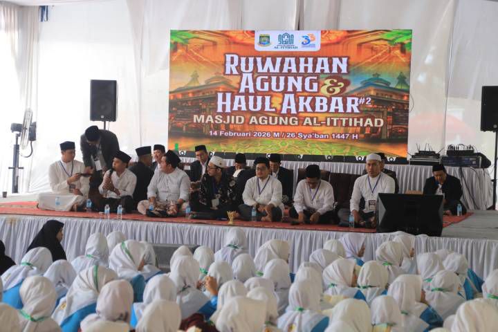 ANGKET24.ID, TANGERANG – Menyambut bulan suci Ramadan sekaligus memeriahkan Hari Ulang Tahun (HUT) ke-33 Kota Tangerang, Masjid Agung Al-Ittihad menggelar Ruwahan Agung dan Haul Akbar Masyayikh Tangerang Raya, Sabtu (14/2/2026). Kegiatan tersebut berlangsung khidmat dan diikuti ratusan jamaah dari berbagai wilayah.