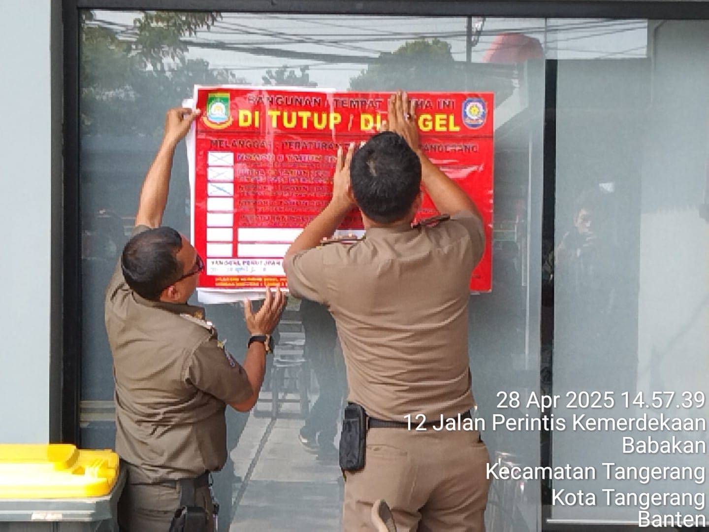 ANGKET24.ID, KOTA TANGERANG – Satuan Polisi Pamong Praja (Satpol-pp) Kota Tangerang lakukan penyegelan ECLUP Kafe berlokasi di depan Taman berkelir, Jalan Perintis Kemerdekaan, Kelurahan Babakan, Kecamatan Tangerang.