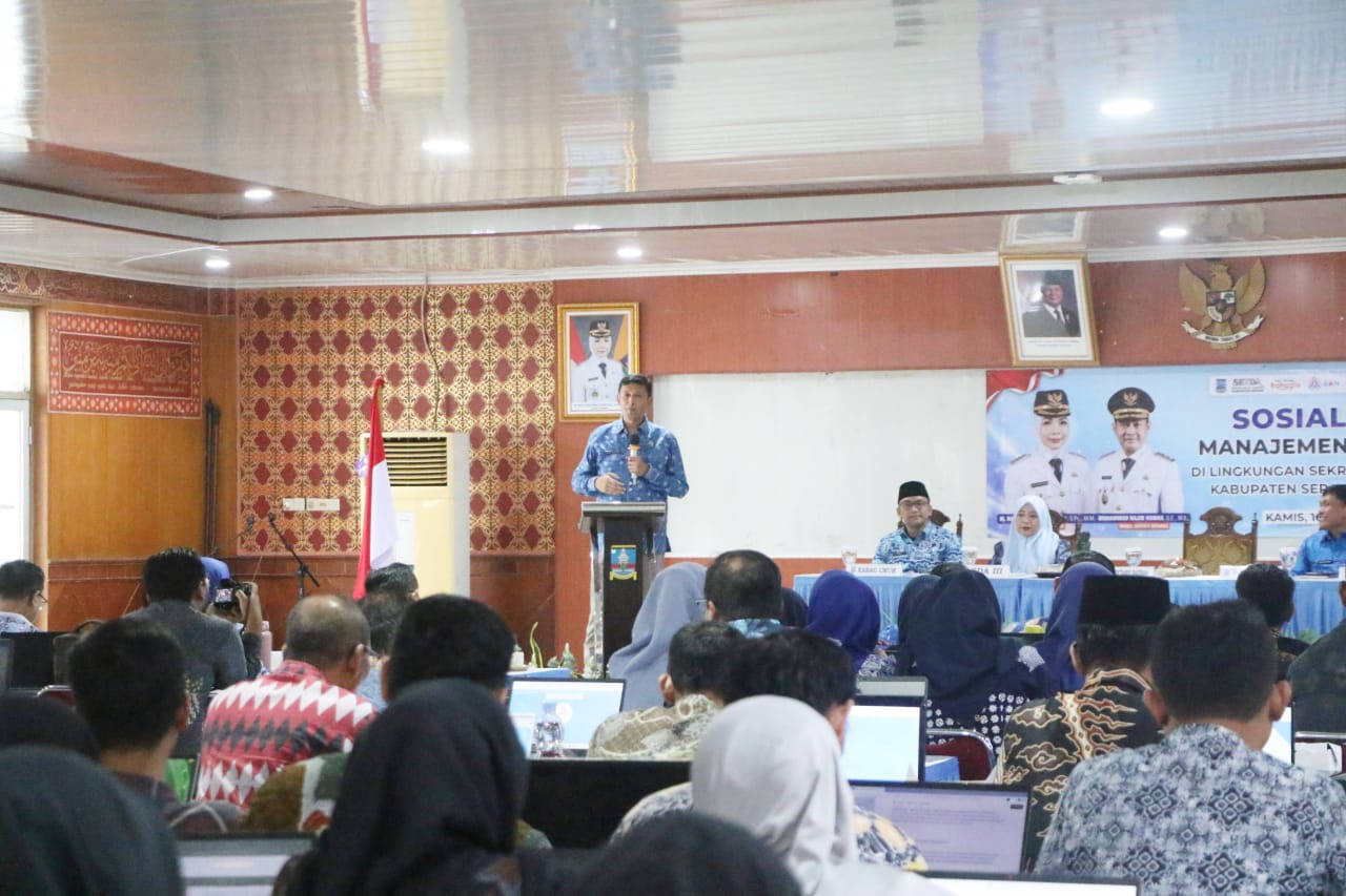 ANGKET24.ID, KAB. SERANG – Sekretaris Daerah (Sekda) Kabupaten Serang, Zaldi Dhuhana menegaskan jika manajemen talenda semua Aparatur Sipil Negara (ASN) mempunyai peluang untuk menduduki jabatan tertentu. Penegasana disampaikan sekda Zaldi, usai membuka Sosialisasi Manajemen Talenta di Lingkungan Sekretariat Daerah (Setda) Kabupaten Serang di Aula Tb. Suwandi pada Kamis, 16 April 2026.