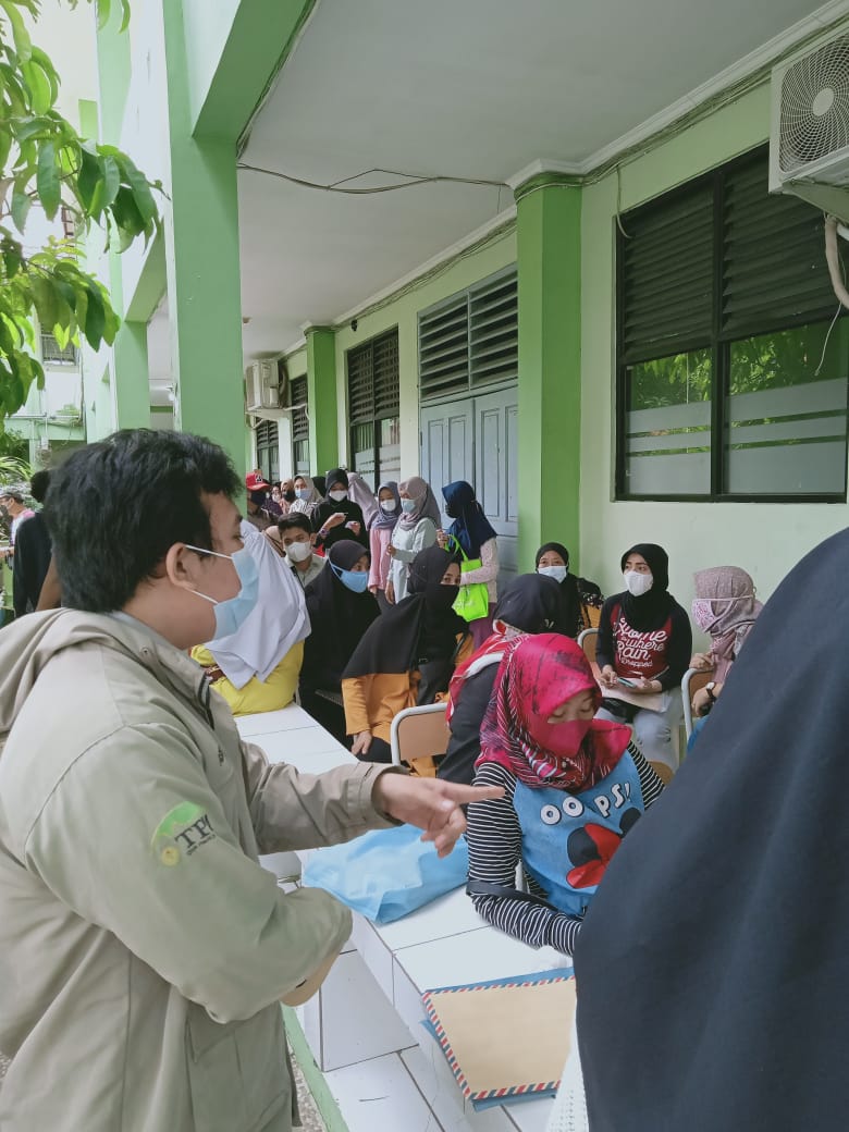 ANGKET24.ID kota Tangerang Antrian Pendaftaran Peserta Anak Didik Baru SMA 3 Ciledug mengular menunggu pelayanan pengantaran berkas pendaftaran Senin 21 Juni 2021.