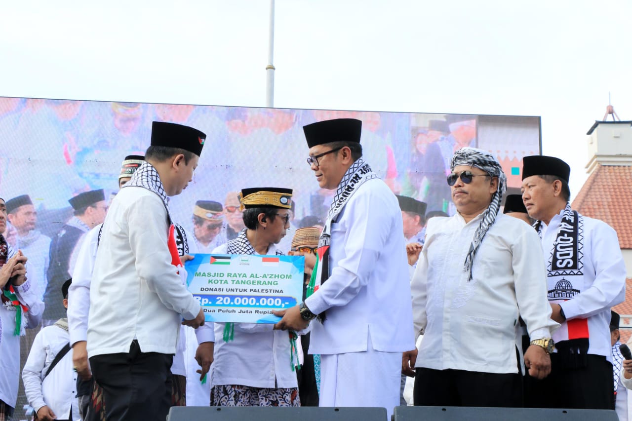 “Kehadiran kita pagi ini menjadi bukti nyata bahwa masyarakat Tangerang berada di pihak Palestina,” tuturnya.