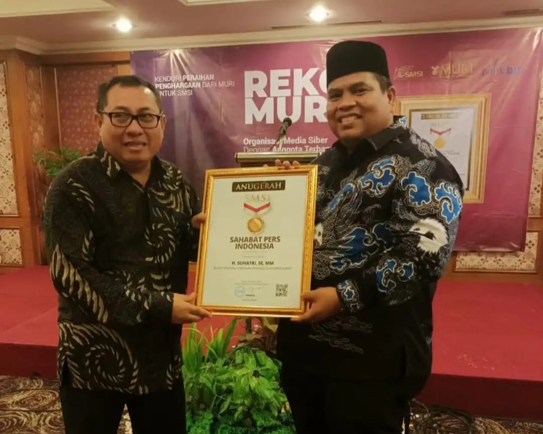 ANGKET24.ID, JAKARTA – Serikat Media Siber Indonesia (SMSI) nobatkan Bupati Padangpariaman, Suhatri Bur, sebagai Sahabat Pers Indonesia. Penghargaan tersebut diserahkan oleh Sekjen SMSI Mohammad Nasir dalam acara syukuran atas raihan penghargaan dari MURI untuk SMSI, di Jakarta, Rabu, 23/3.