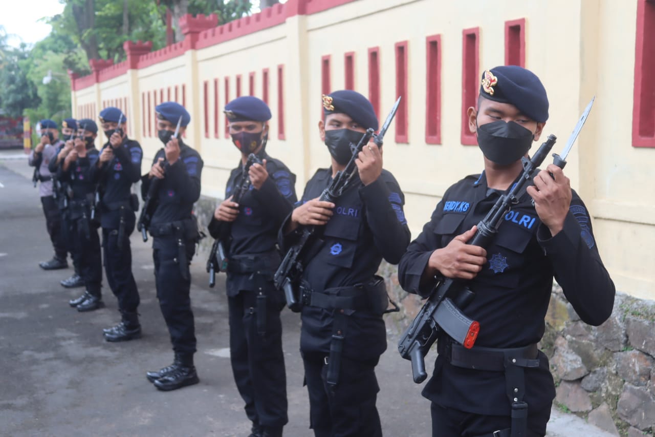 ANGKET24.ID, SERANG – Dalam rangka latih kedisiplinan tentang baris berbaris, personel Batalyon B Pelopor Satuan Brimob Polda Banten melaksanakan latihan Peraturan Baris Berbaris (PBB) bersenjata di Satbrimob Polda Banten pada Senin (21/03).