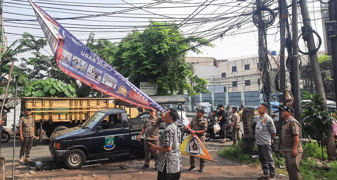 ANGKET24.ID, KOTA TANGERANG – Kecamatan Larangan Kota Tangerang terus berkomitmen meningkatkan ketertiban estetika kota di berbagai wilayah. Salah satunya, penertiban spanduk liar yang bertebaran di sepanjang Jalan Taman Asri Cipadu sampai Jalan Wahid Hasyim Cipadu, Larangan, Kota Tangerang.
